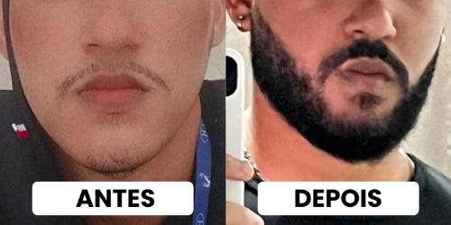 "Eu não tinha barba, tentei o Minoxidil mas minha cara só coçava e deu uns pelinho nada vê, e depois que eu parei caiu maior parte. E agora tenho a tão esperada barba, graças ao tônico e as capsulas de vocês. Obrigado!"
